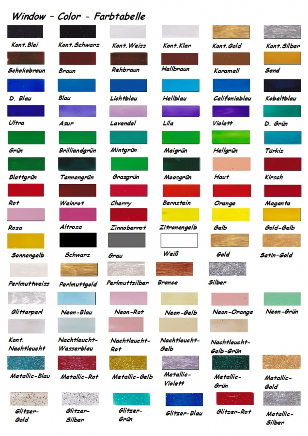Das Riesen-Window-Color-Set beinhaltet folgende Window Color Farben: